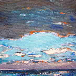 This 9 x 9 inch (22,5 x 22,5 cm) small Acrylic on Cotton Canvas 'Paintings where first shown in Flat Iron Building for the Coyote Fall Arts Festival from september 10th to 12th 2004.